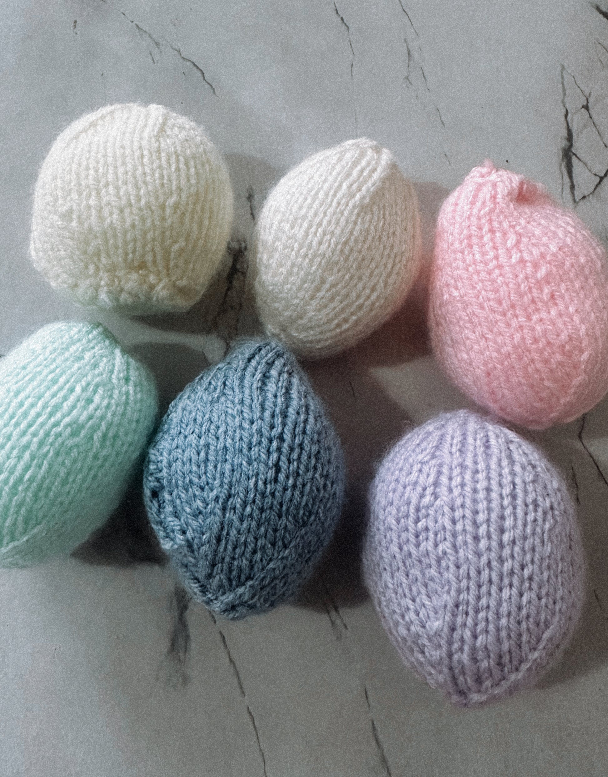 Bundle contains 6 individual knitted eggs.